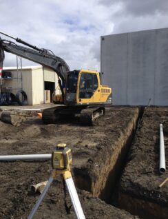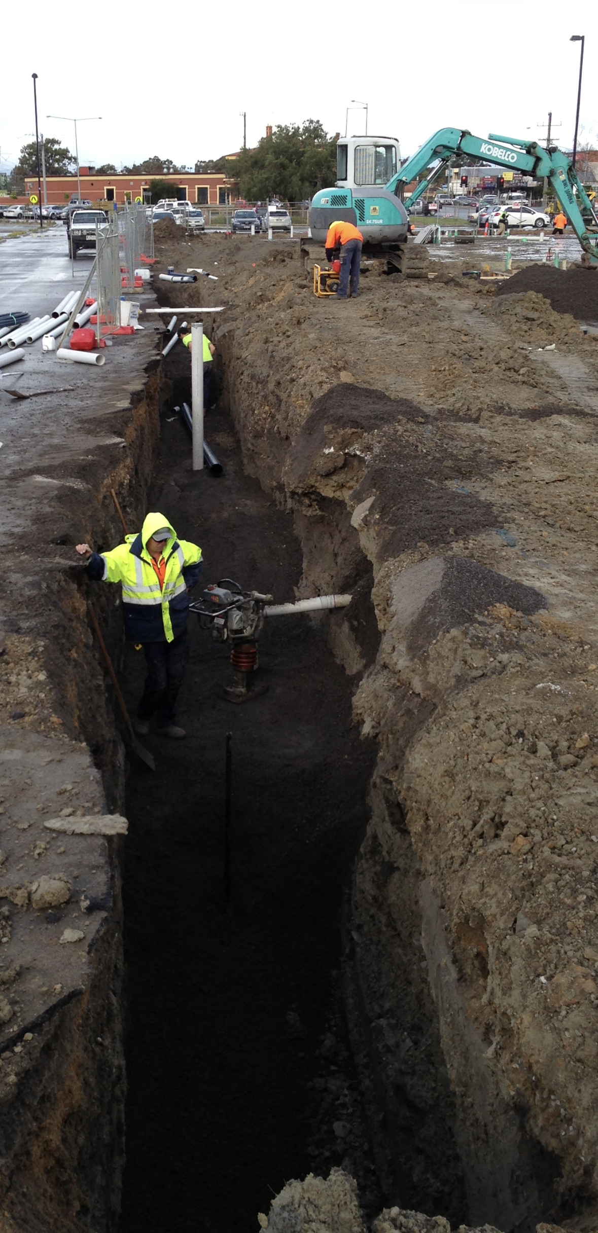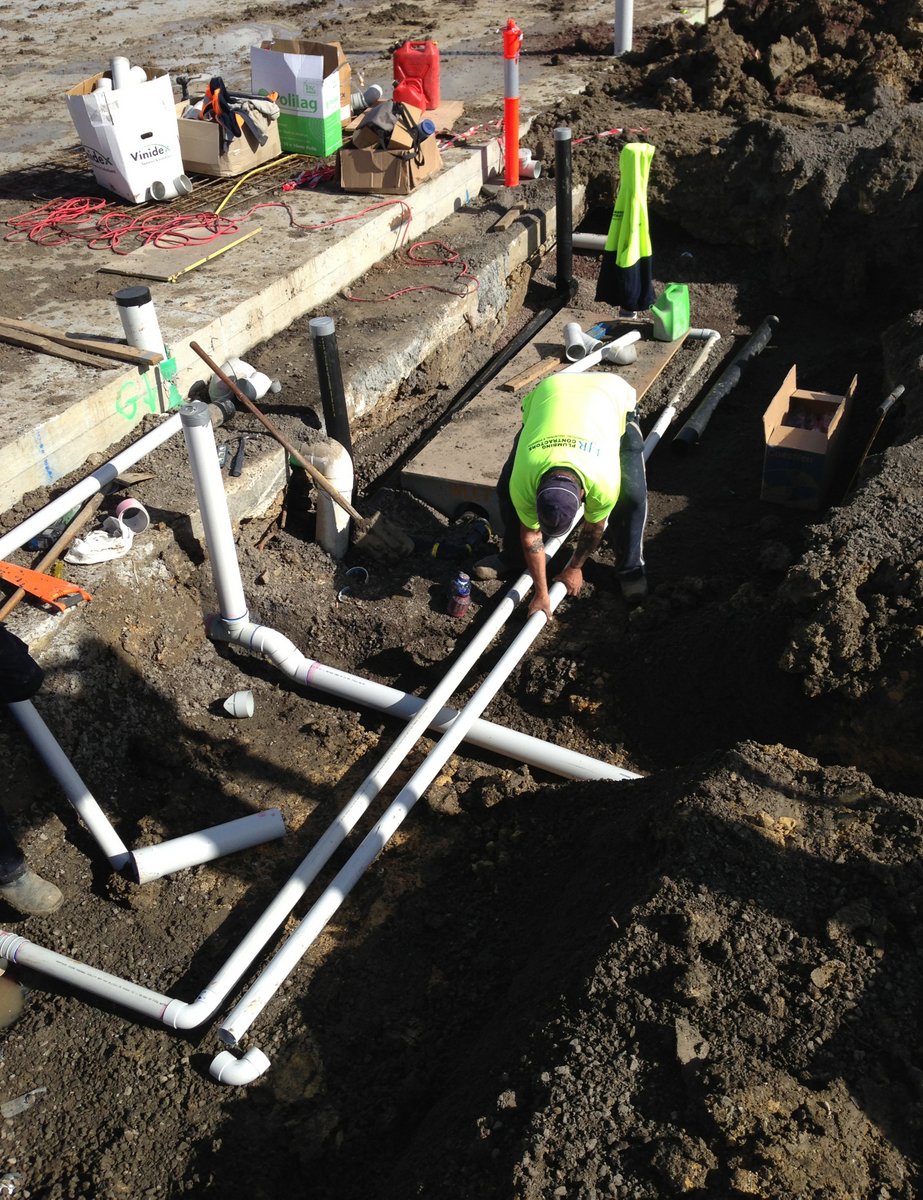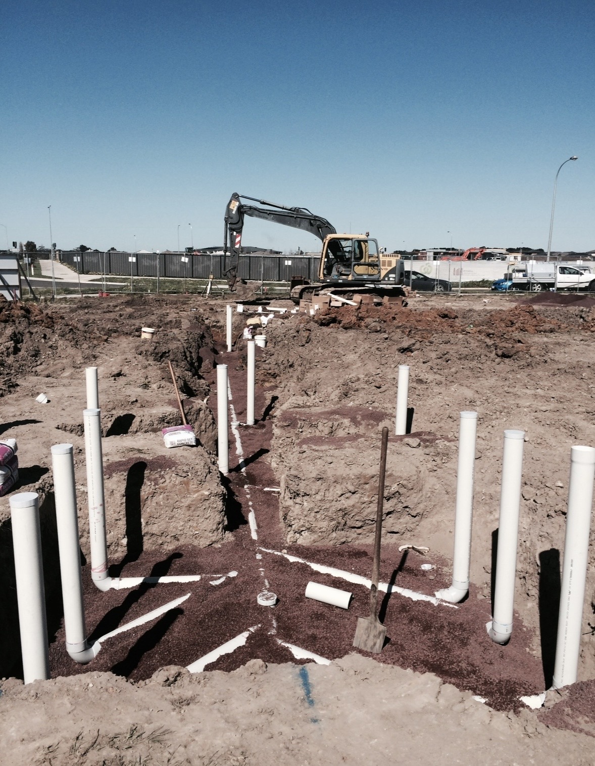 [PHOTOS] Stormwater and sewer main installation. Bulk earthworks and deep trench excavation. Commercial-grade PVC and concrete drainage lines. Multi-lot / housing estate underground services. Large-scale pits, risers, and access chambers. Structural shoring and confined-space trench work. Pre-slab drainage for warehouses, retail, and industrial buildings. Coordination with machinery, survey levels, and site crews.
